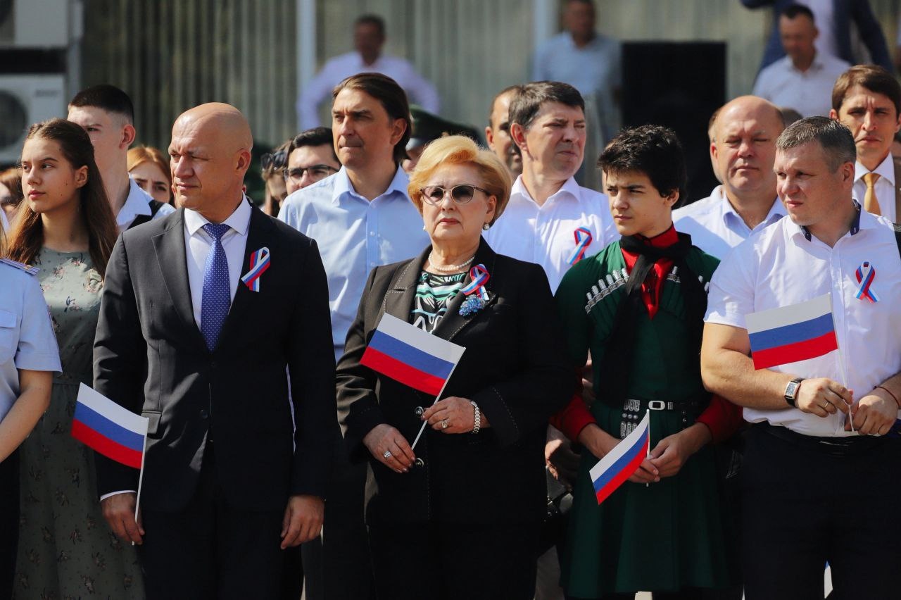 С праздником горожан поздравил глава города Евгений Наумов. Флаг был водружен на флагшток почетным караулом Кубанского казачьего войска и участниками движения «Пост №1».
