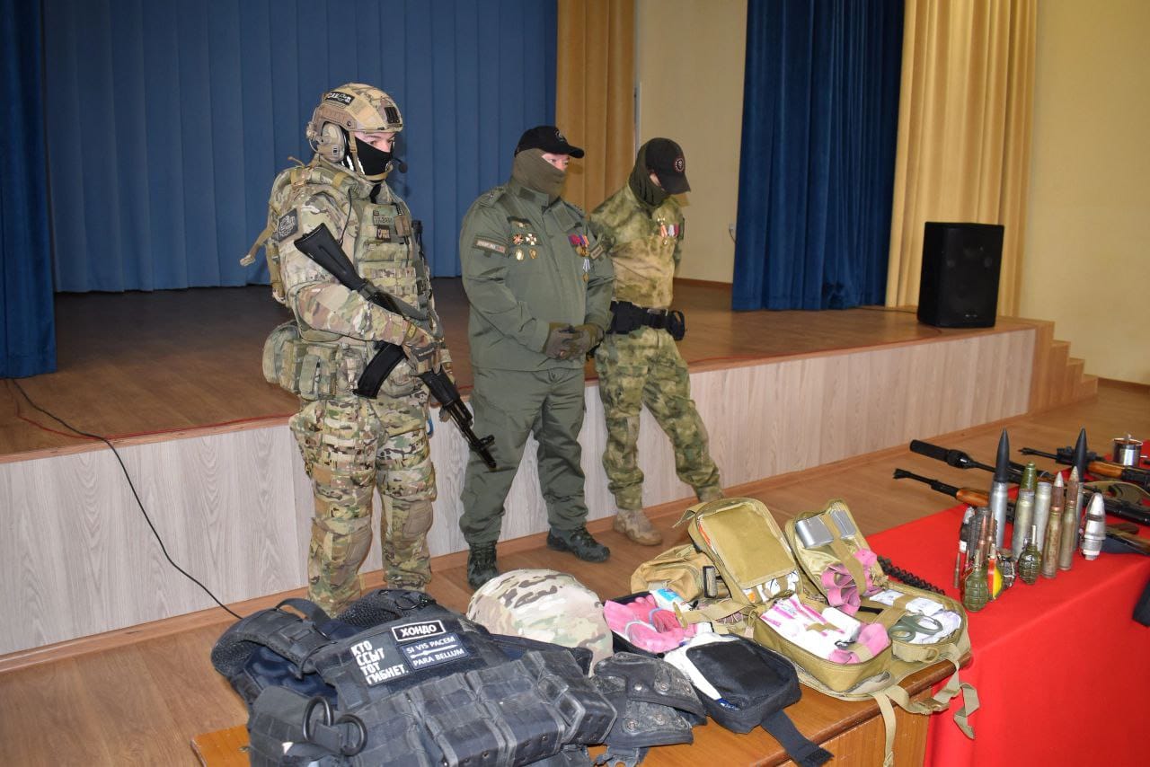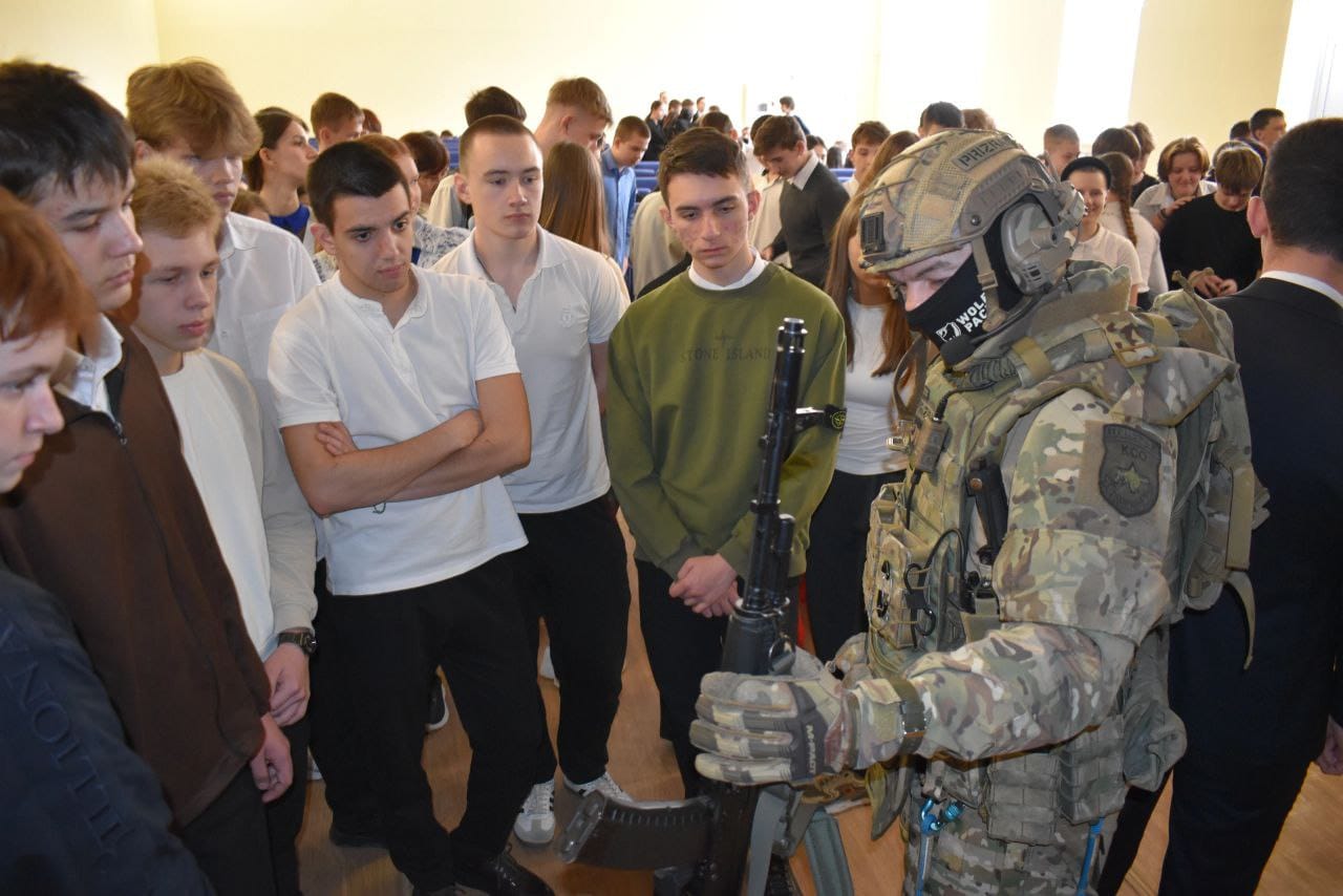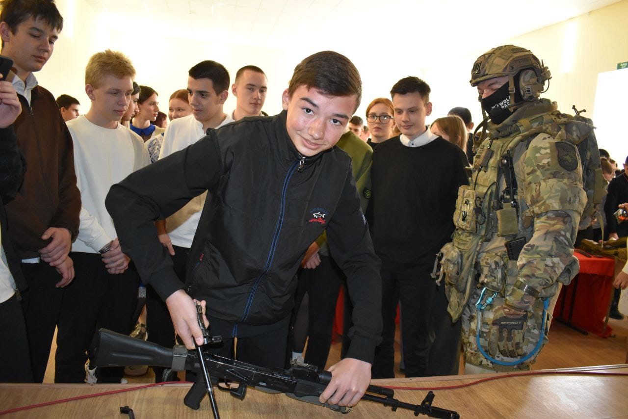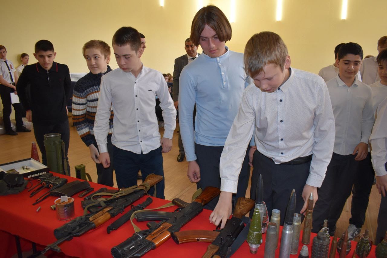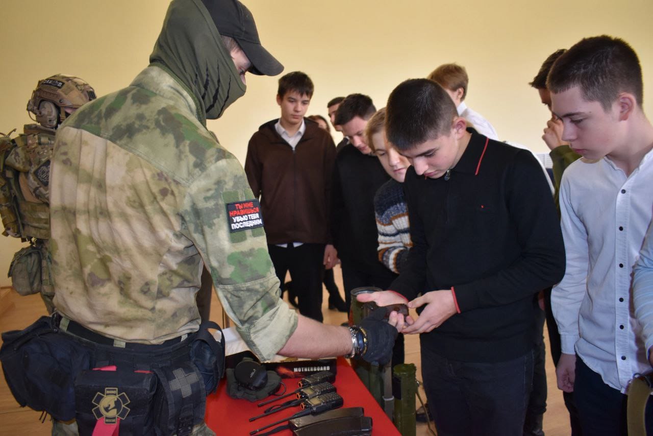 Больше всего эмоций у молодежи вызвала выставка. Все экспонаты можно было взять в руки, рассмотреть и даже примерить. Из желающих лично оценить вес бронежилета и сделать фото в каске, с оружием в руках даже выстроилась очередь. Ребята продемонстрировали навыки в сборке и разборке автомата Калашникова, узнали о работе средств связи, рассмотрели содержимое аптечки.