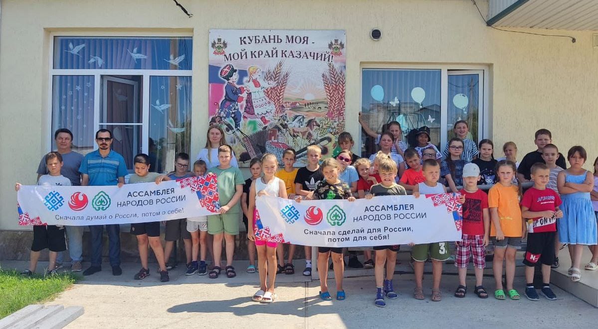 Представители местного отделения ООГО «Ассамблея народов России» Мостовского района Мордвицкий Виктор, Рогачев Сергей и Фролова Екатерина провели в лагере среднееобразовательной школы №28 просветительское межкультурное мероприятие.