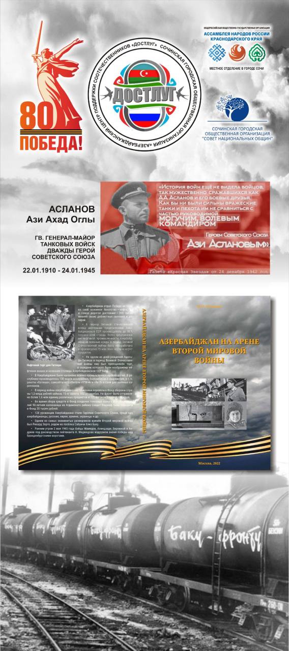 «В годы Великой Отечественной войны все народы многонационального Советского Союза встали на защиту Родины. С первых дней вторжения нацистов азербайджанский народ поднялся на борьбу с захватчиками – любовь к Отечеству проявилась не только в боевых подвигах воинов-азербайджанцев, но и в героическом труде рабочих в тылу: в Баку изготавливалось более 130 видов оружия, боеприпасов и военного снаряжения. Все трудились для фронта и знали, Победа обязательно будет, и это будет нашей общей Победой, одна на всех. Поэтому сегодня крайне важно сохранять историческую память и передавать ее молодежи», – рассказал председатель СГОО «Азербайджанский центр поддержки соотечественников «ДОСТЛУГ», председатель местного отделения ООГО «Ассамблея народов России» города Сочи Ильгар Салимов.