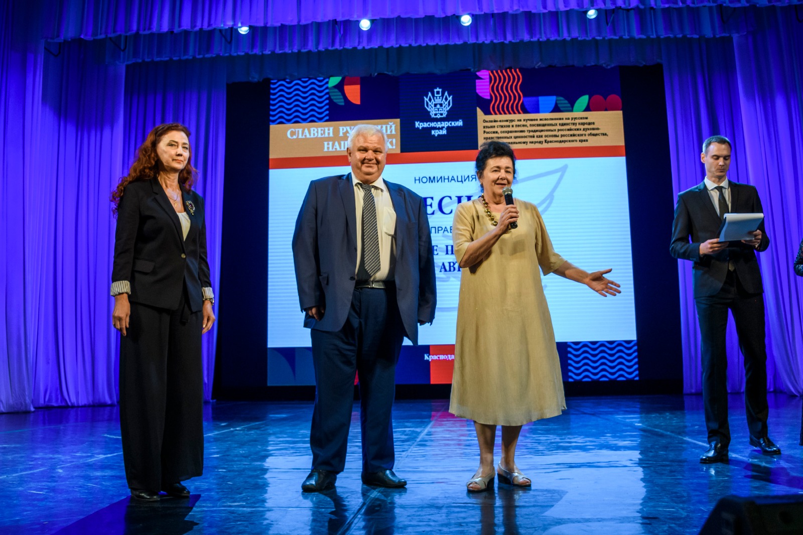 В Краснодаре состоялось итоговое мероприятие в рамках проведения регионального творческого онлайн-конкурса на лучшее исполнение на русском языке стихов и песен, посвященных единству народов России, сохранению традиционных российских духовно-нравственных ценностей, многонациональному народу Краснодарского края «Славен русский наш язык!».