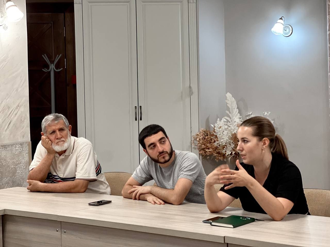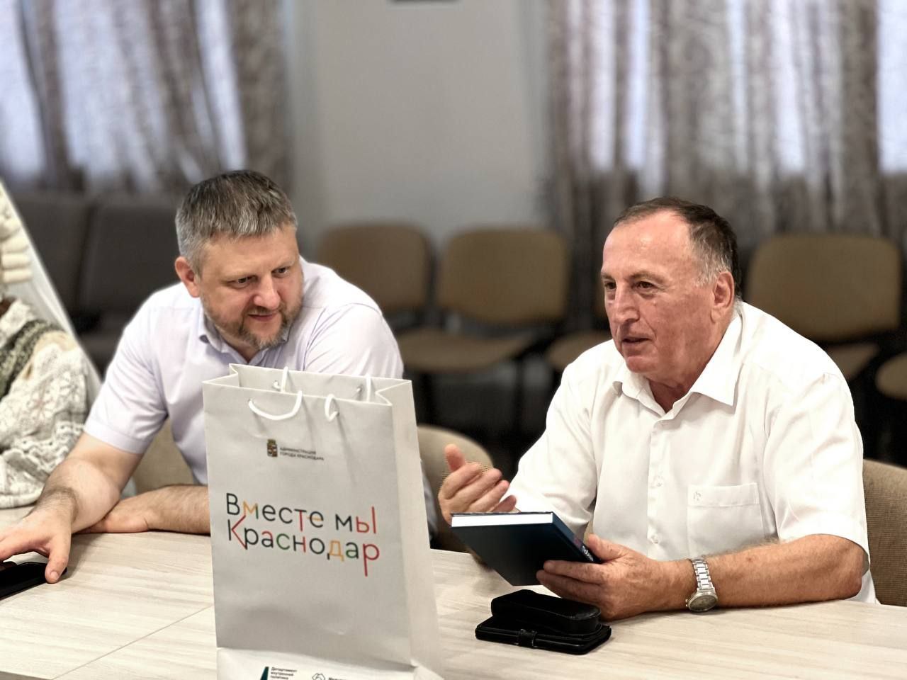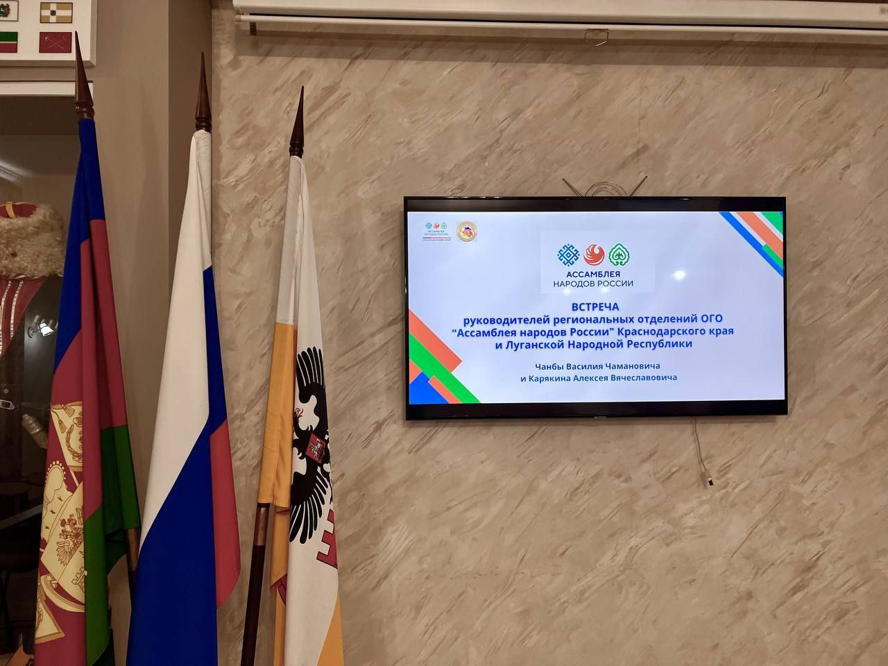 Встречу организовали председатель регионального отделения Общероссийской общественно-государственной организации «Ассамблея народов России» Краснодарского края, председатель Правления Центра национальных культур Василий Чанба и глава Общественной палаты ЛНР и регионального отделения Ассамблеи народов России Алексей Карякин в гостиной Общественно-информационного центра Краснодара.