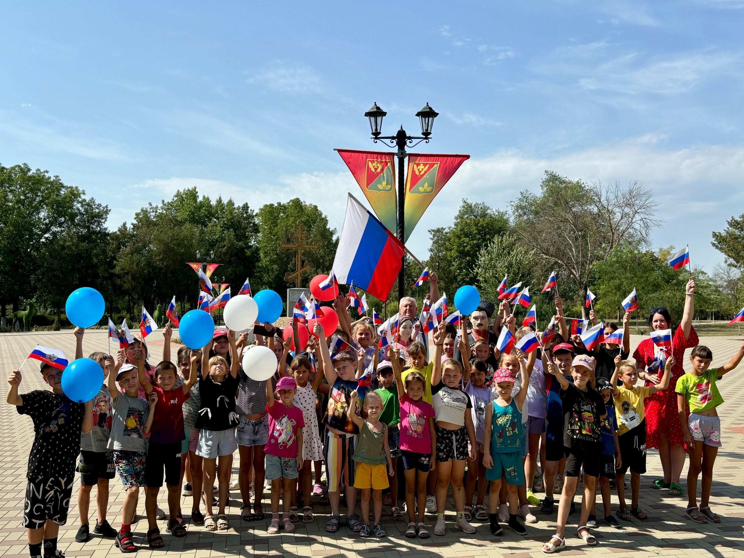 Спортивно-игровая программа, посвященная Дню Государственного флага Российской Федерации, состоялась 22 августа и объединила около 80 мальчишек и девчонок собрались в парке станицы.