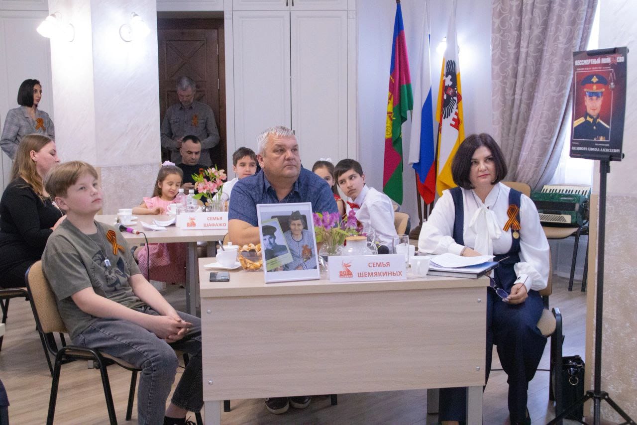 Семьи Крохмаль, Шемякиных, Алены Маминой и Шафажо рассказали о том, как гордятся своими прадедами, ветеранами Великой Отечественной войны, и о том, как участвуют сегодня в оказании помощи бойцам специальной военной операции.