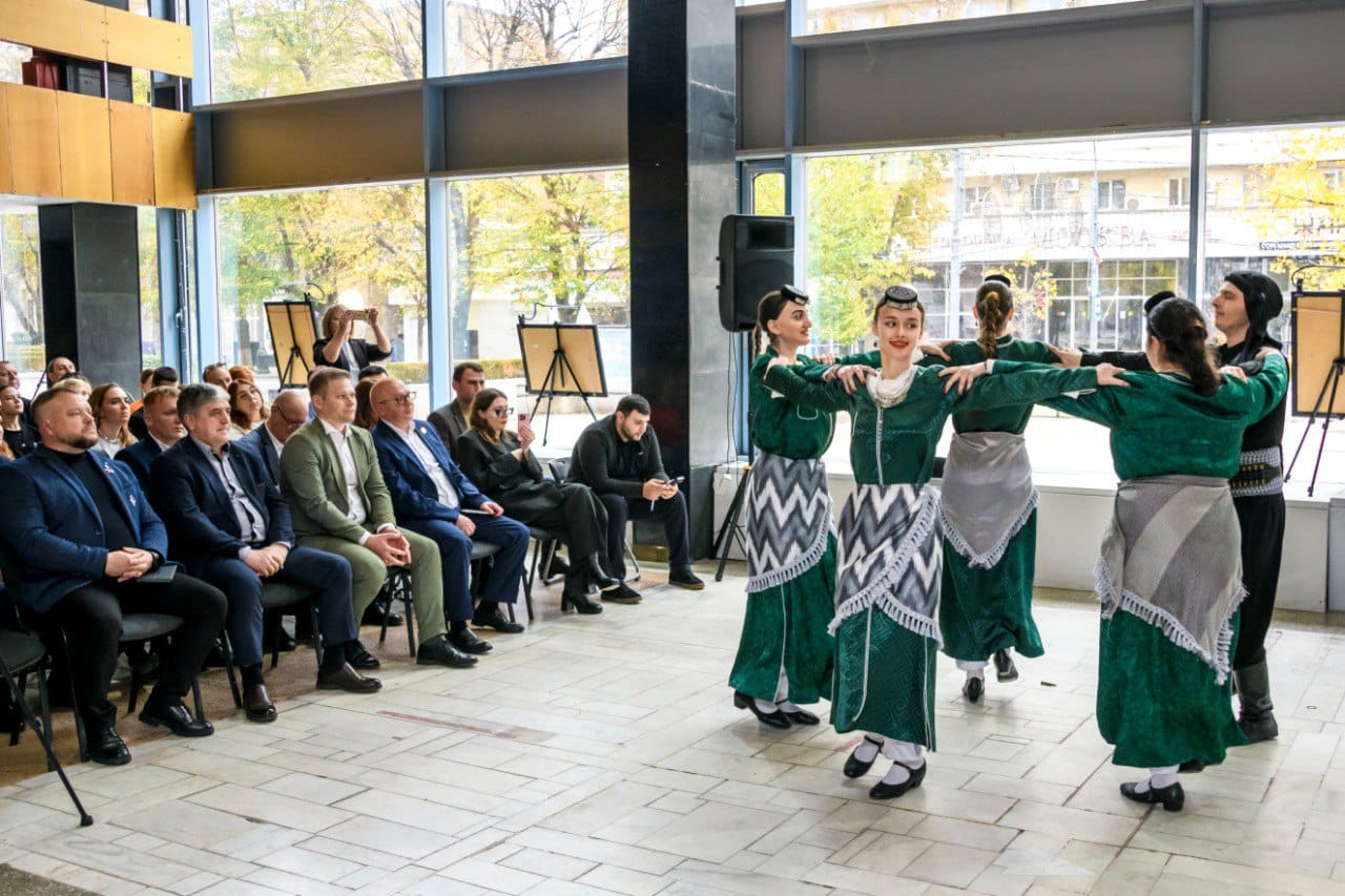 Выступающих экспертов сменяли танцевальные коллективы национально-культурных общественных объединений. В фойе работали выставки народно-прикладного искусства разных национальностей.