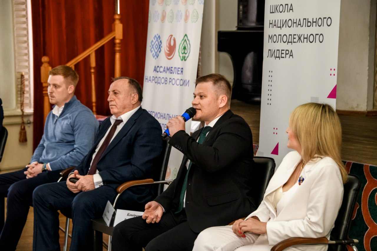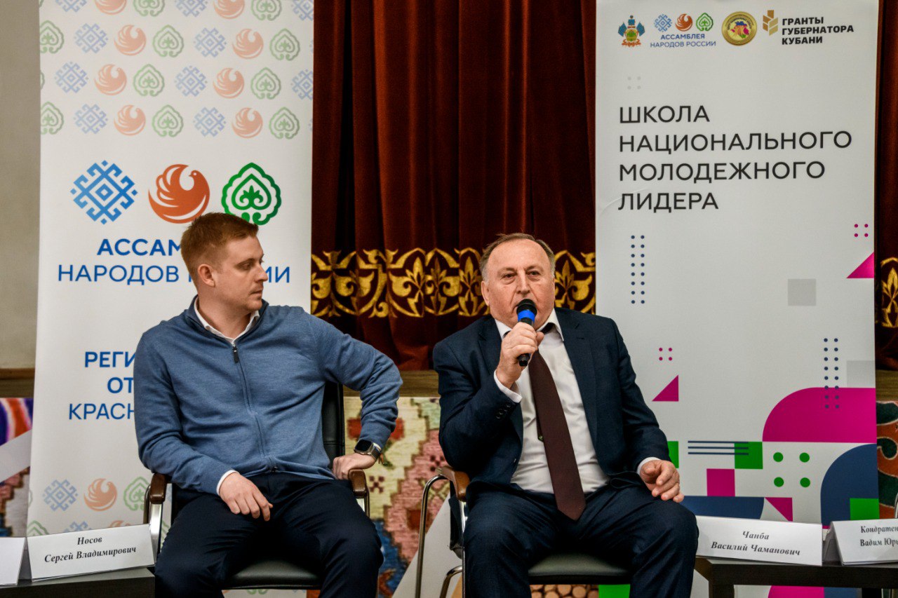 Участники Школы национального молодежного лидера со всего Краснодарского края в прямом диалоге пообщались с заместителем директора департамента внутренней политики администрации Краснодарского края Вадимом Кондратенко, председателем комитета Законодательного Собрания Краснодарского края по физической культуре, спорту, делам молодежи и взаимодействию с общественными объединениями Сергеем Носовым. Участники с интересом задавали вопросы, в частности, о перспективах в национально-культурном секторе для молодежи, возможностях повышения квалификации руководителей национальных коллективов, реализуемых в крае проектах. О работе проектной мастерской Кубанского казачьего войска рассказал руководитель направления Виктор Баранов, а руководитель Центра развития и продвижения этнокультур «Этномир» Елена Кузьменко поделилась советами эффективного взаимодействия НКО И СМИ.