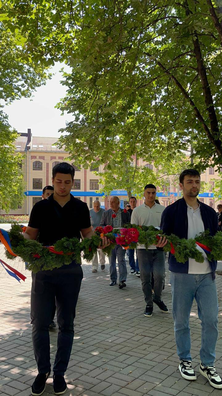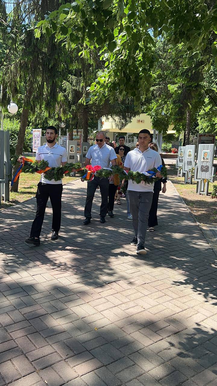 12.05.2024 в парке 40 лет победы представители армянского общества во главе с председателем Мелтонян Айком Юрьевичем и представителем регионального отделения Общероссийской общественно-государственной организации «Ассамблеи народов России»Краснодарского края в Славянском районе Мелтонян Анаит Юрьевной возложили гирлянды и цветы к Мемориалу «Вечный огонь», в дань памяти подвига Советского народа в годы Великой Отечественной войны.