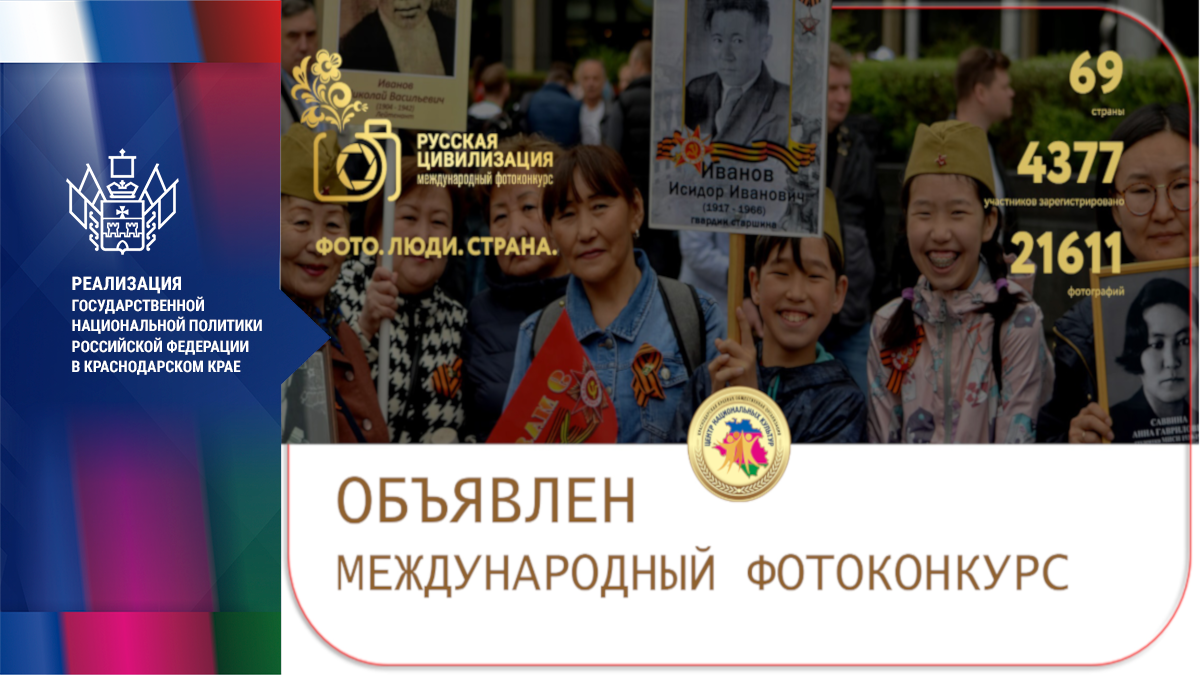 Международный фотоконкурс «Русская цивилизация» будет проводиться Федеральным агентством по делам национальностей России (ФАДН России) с 5 сентября по 5 октября 2023 года с целью содействия гармонизации межнациональных отношений и этнокультурному развитию народов.