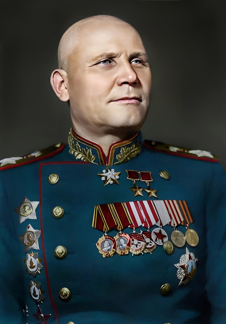 КОНЕВ Иван Степанович (22.12.1897–21.05.1973), советский полководец, Маршал Советского Союза, дважды Герой Советского Союза, кавалер ордена «Победа» и семи орденов Ленина. Иван Степанович Конев родился в дер. Лодейно Никольского уезда Вологодской губернии в семье крестьянина. В годы Великой Отечественной войны командовал Западным, Калининским, Северо-Западным, Степным, Вторым и Первым Украинскими фронтами. Главнокомандующий Объединенными вооруженными силами стран-участниц Организации Варшавского договора (1955–1960), первый заместитель министра обороны СССР (1956–1960), главнокомандующий Сухопутными войсками (1946–1950, 1955–1956). С июня 1960 по август 1961 года и с апреля 1962 года – в Группе генеральных инспекторов МО СССР. В августе 1961 – апреле 1962 года – главнокомандующий Группой советских войск в Германии. 30 января 1965 года в составе советской правительственной делегации принял участие в похоронах бывшего премьер-министра Великобритании У. Черчилля. Умер И. С. Конев 21 мая 1973 года. Его прах захоронен в некрополе у Кремлевской стены на Красной площади в г. Москве.